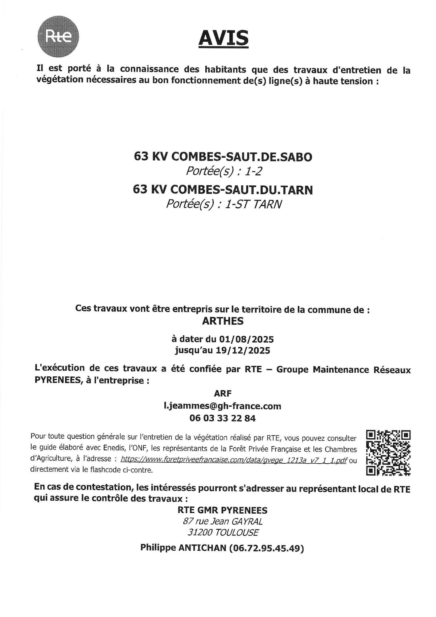 sont prévus sur la commune d’ARTHÈS à dater du 01/08/2025 jusqu’au 19/12/2025