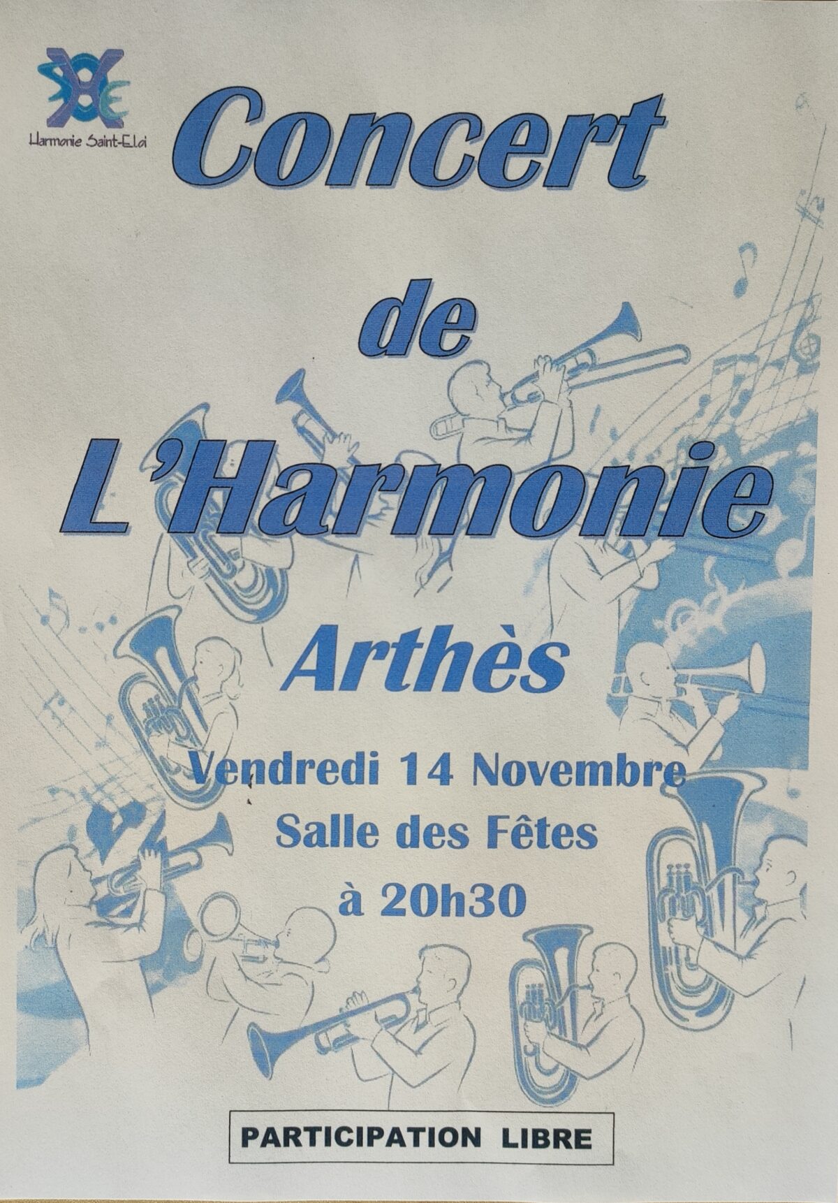 Catégories Actualités Concert de l’Harmonie Saint-Éloi Auteur de l’article Par redacteur Date de l’article 4 novembre 2025 L’Harmonie Saint-Éloi propose un concert le vendredi 14 novembre à la salle des loisirs Georges Albinet à 20 heures 30. La participation est libre. Parking aisé place François Mitterrand ← Cérémonie 11 novembre 2025 à Arthès